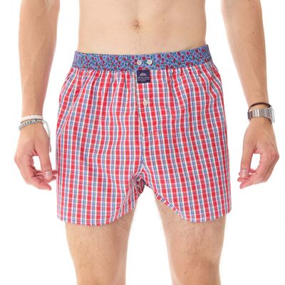 MC Alson Boxershort Heren: Madras marine, Los model met ingewerkte slip